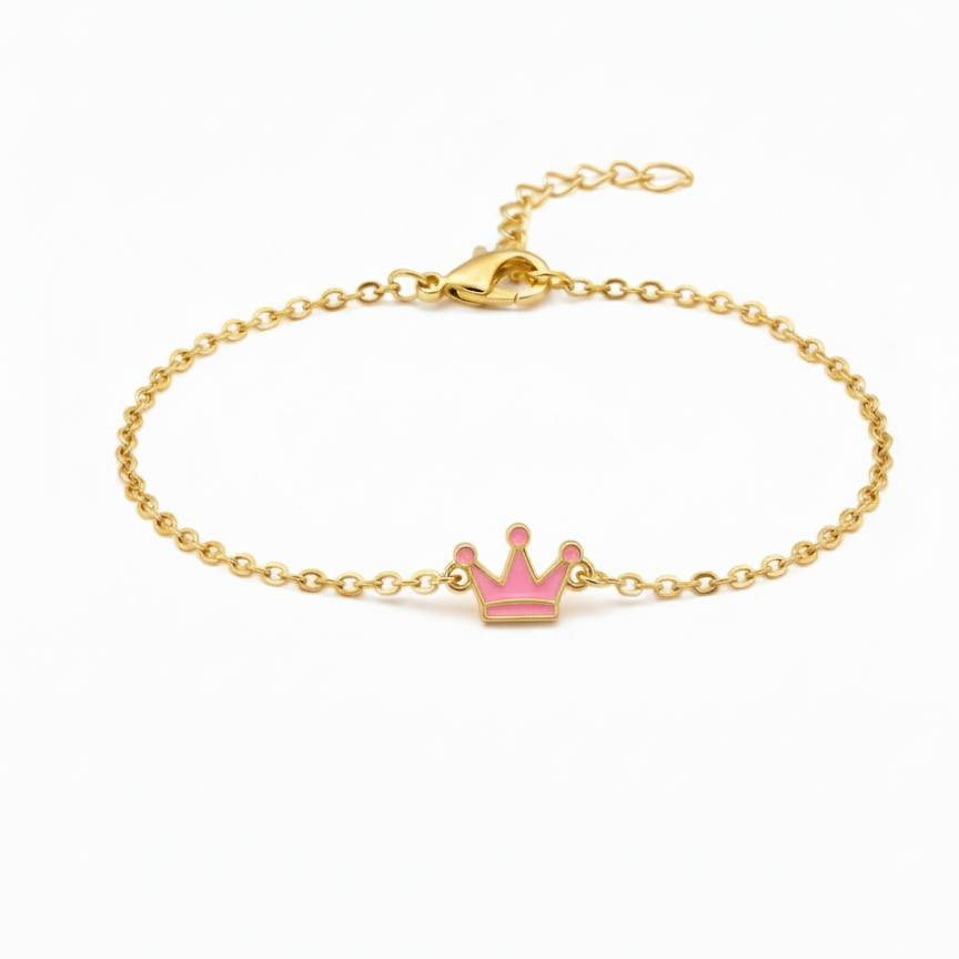 Cool enamelled crown flexible chain bracelet for kids, handcrafted in pure 92.5 sterling silver with your choice of silver or 18k gold finish. Hypoallergenic and adjustable by half an inch for a perfect fit.