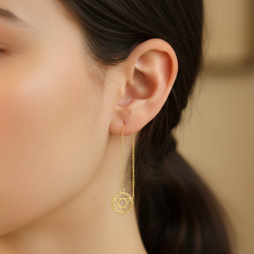 Express your authentic voice with our enchanting Throat Chakra Threader Earrings. Meticulously crafted in 92.5% silver and adorned with 18k gold plating, these earrings resonate with the energy of the Throat chakra. Their sleek threader design effortlessly embodies communication and self-expression. Elevate your style and empower your voice with these...