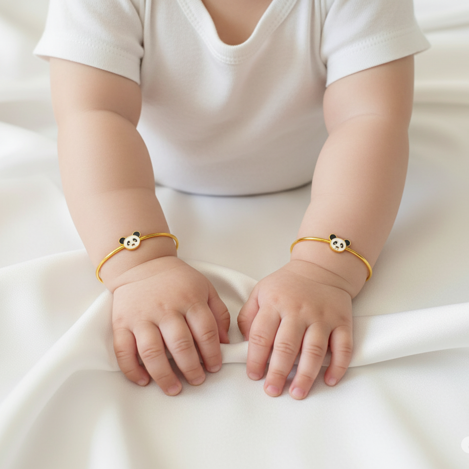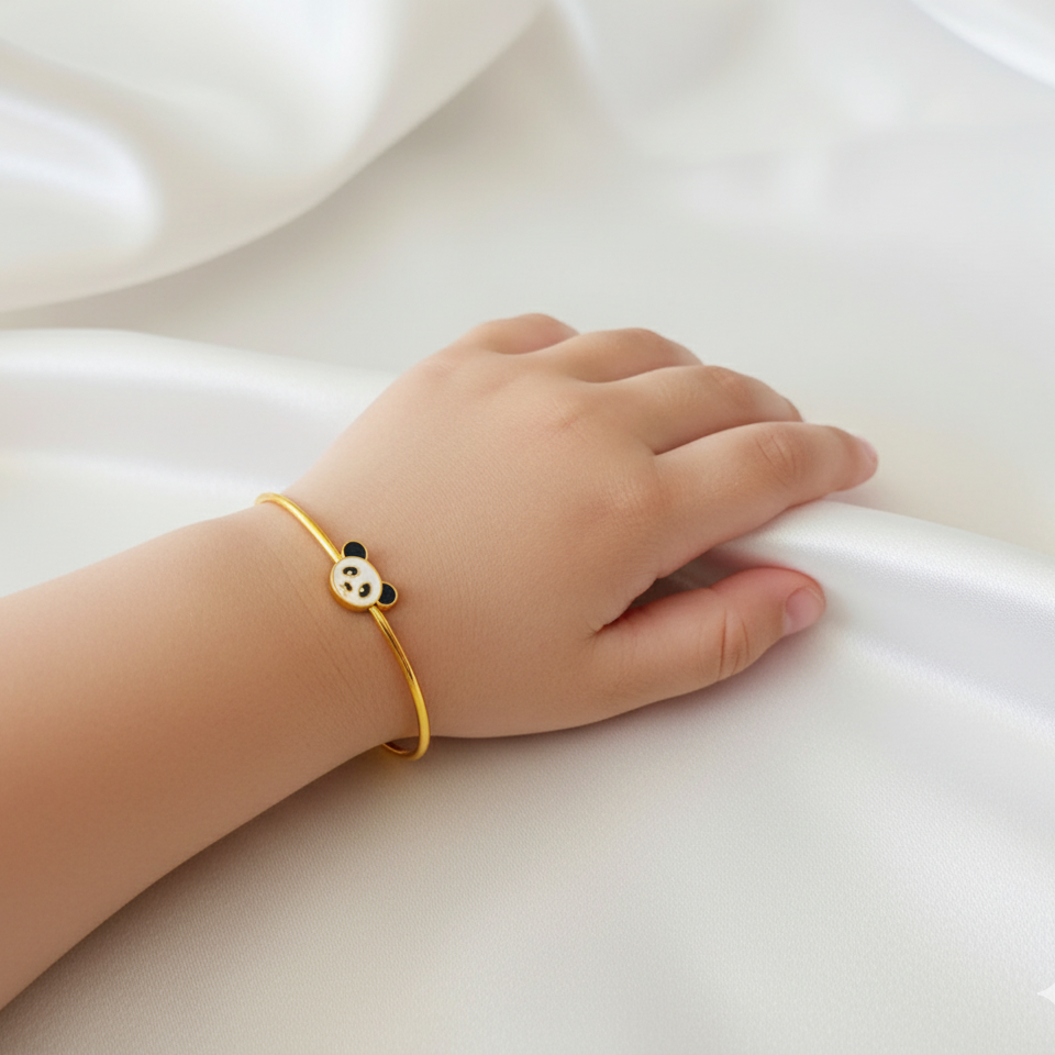 This Panda Silver adjustable kids' bangle is made from 92.5 sterling silver and beautifully finished with 18k gold. Designed for durability and comfort, it’s adjustable to fit children up to 5 years old, adding a joyful touch to any outfit.