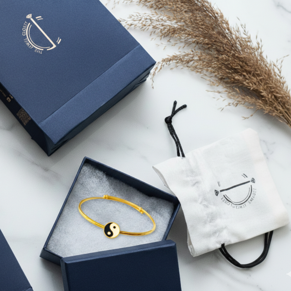 This Yin yang Silver adjustable kids' bangle is made from 92.5 sterling silver and beautifully finished with 18k gold. Designed for durability and comfort, it’s adjustable to fit children up to 5 years old, adding a joyful touch to any outfit.