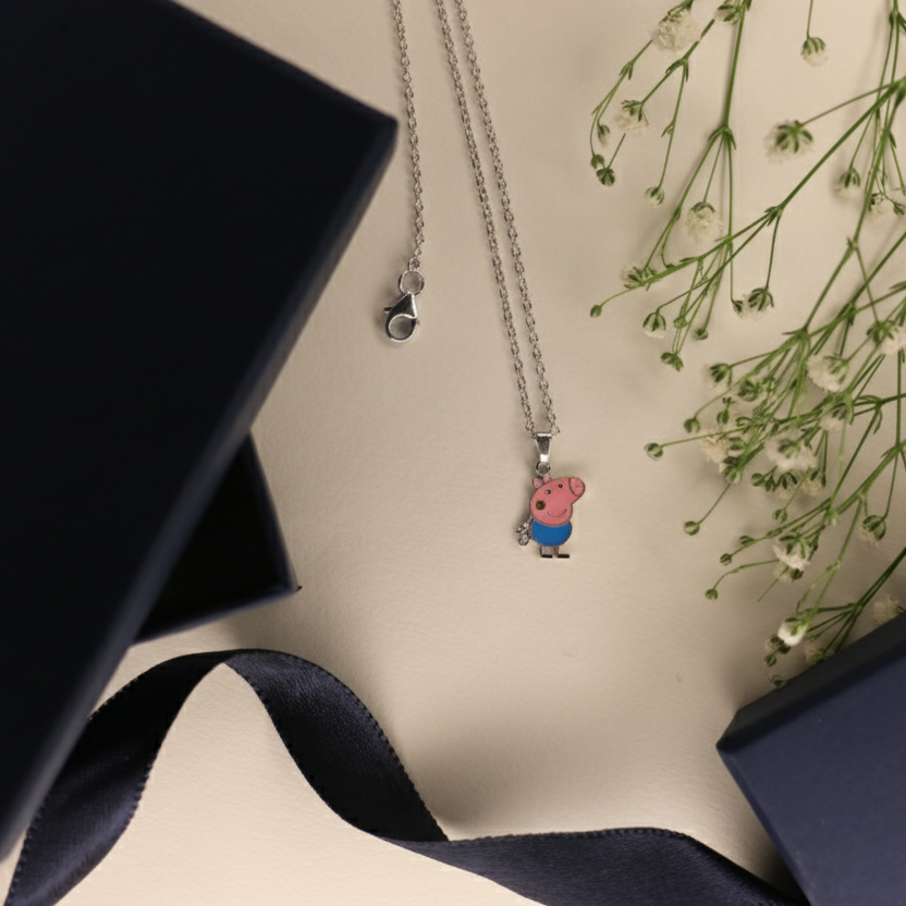 Adorable enamelled Peppa necklace for kids, handcrafted in pure 92.5 sterling silver with a beautiful 18k gold finish. Hypoallergenic and perfect for everyday wear. Pair it with matching ear studs from our collection for a complete look.