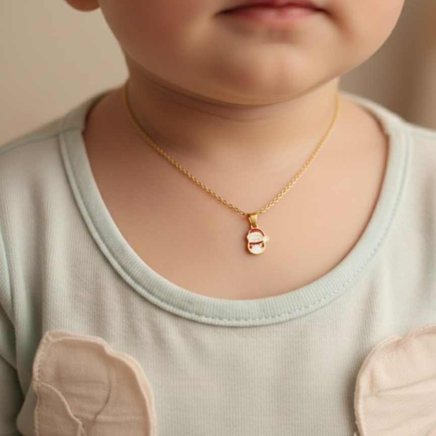 Cool enamelled snowman necklace for kids, handcrafted in pure 92.5 sterling silver with a premium 18k gold finish. Hypoallergenic and perfect for everyday style. Pair it with matching ear studs from our collection for a complete look.