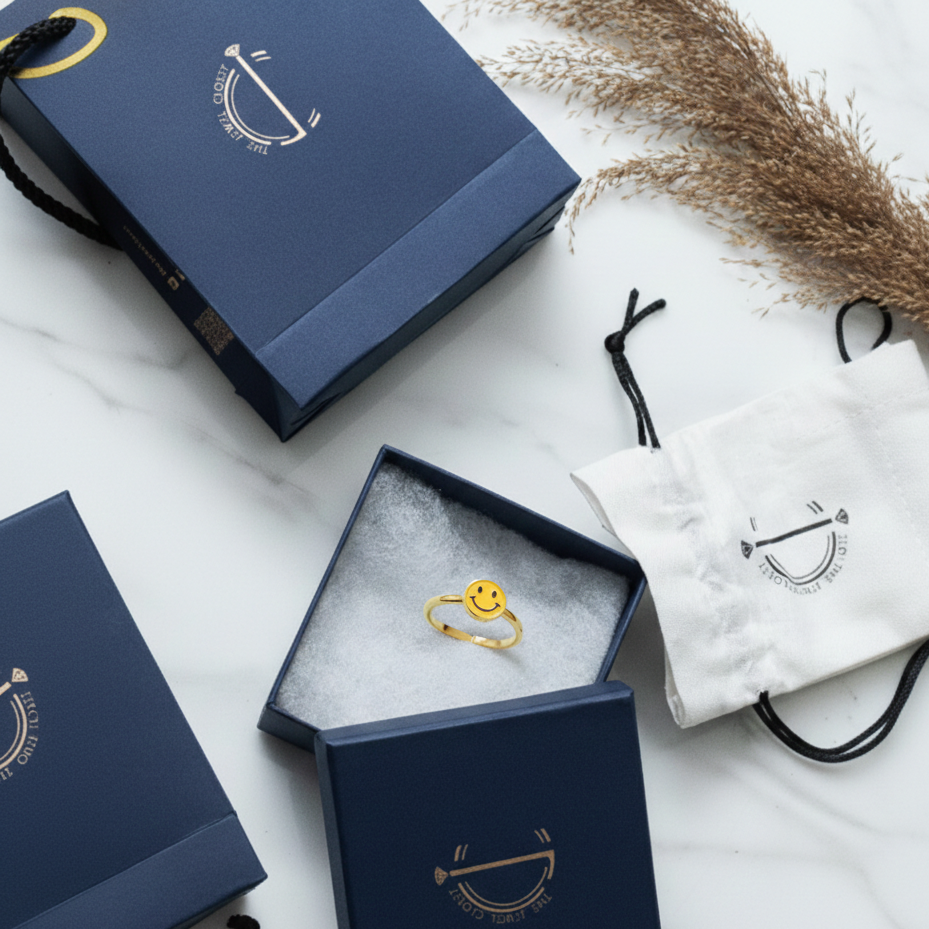 "Cheerful smiley enamelled rings for kids, made in pure 92.5% silver with an 18k gold finish. Handcrafted with love and hypoallergenic for delicate skin!"
