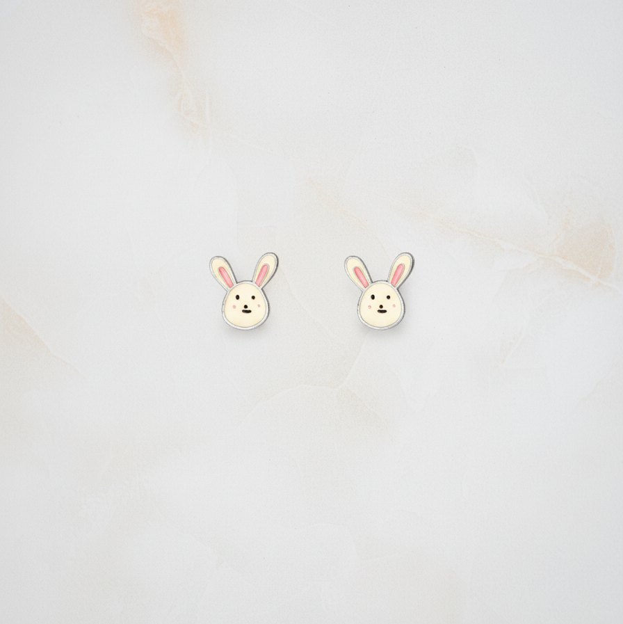 Cute enamelled bunny ear studs for girls, handcrafted in pure 92.5 sterling silver with a shiny 18k gold finish. Hypoallergenic and perfect for everyday sweetness.