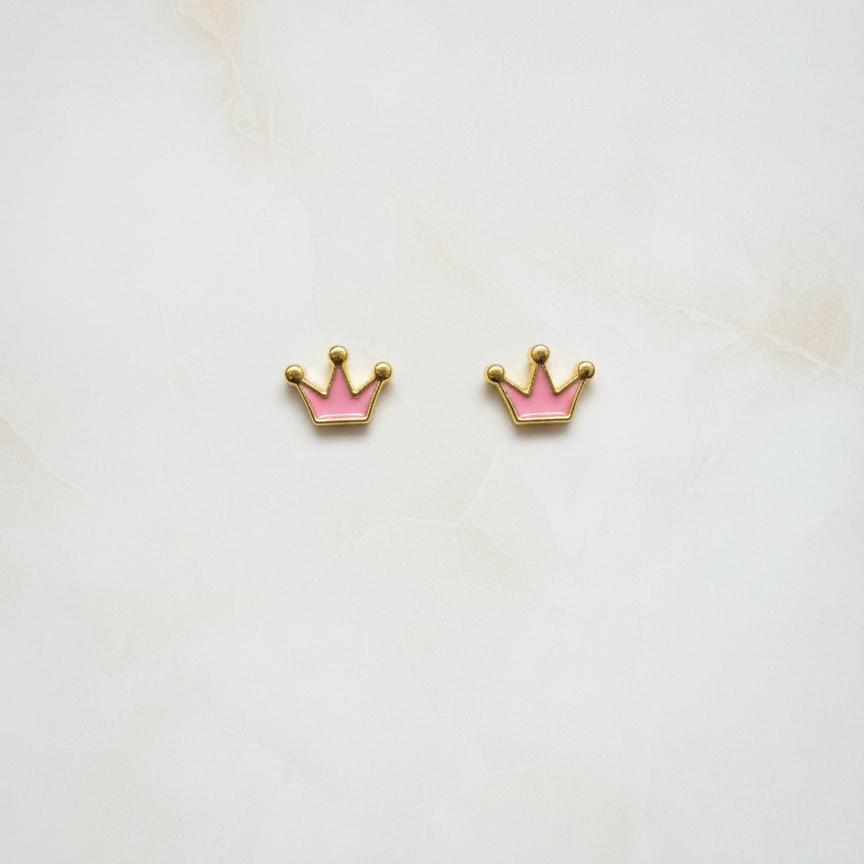 Adorable enamelled crown ear studs for girls, handcrafted in pure 92.5 sterling silver with a premium 18k gold finish. Hypoallergenic and perfect for everyday cuteness.
