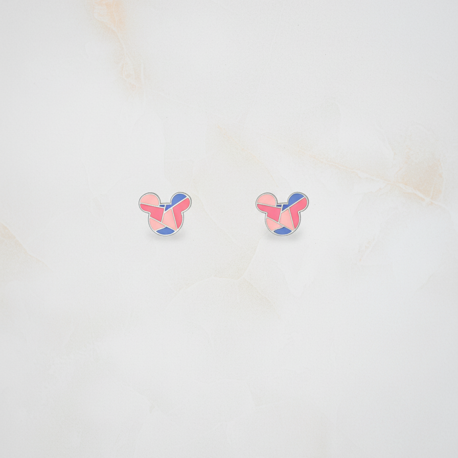 Playful enamelled Mickey ear studs for girls, handcrafted in pure 92.5 sterling silver with a radiant 18k gold finish. Hypoallergenic and perfect for everyday fun.