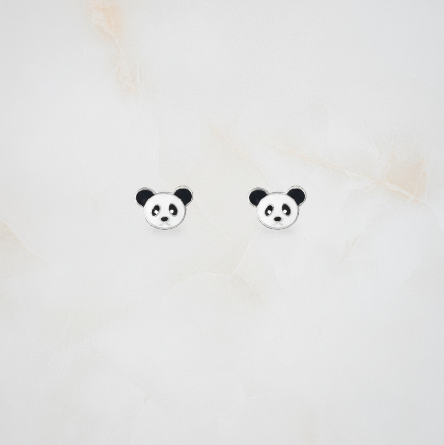 Adorable enamelled panda ear studs for girls, handcrafted in pure 92.5 sterling silver with a luxe 18k gold finish. Hypoallergenic and perfect for everyday charm.