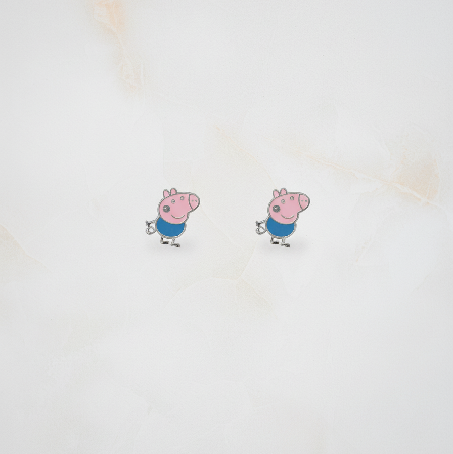 Adorable enamelled Peppa ear studs for girls, handcrafted in pure 92.5 sterling silver with a premium 18k gold finish. Hypoallergenic and perfect for everyday cuteness.