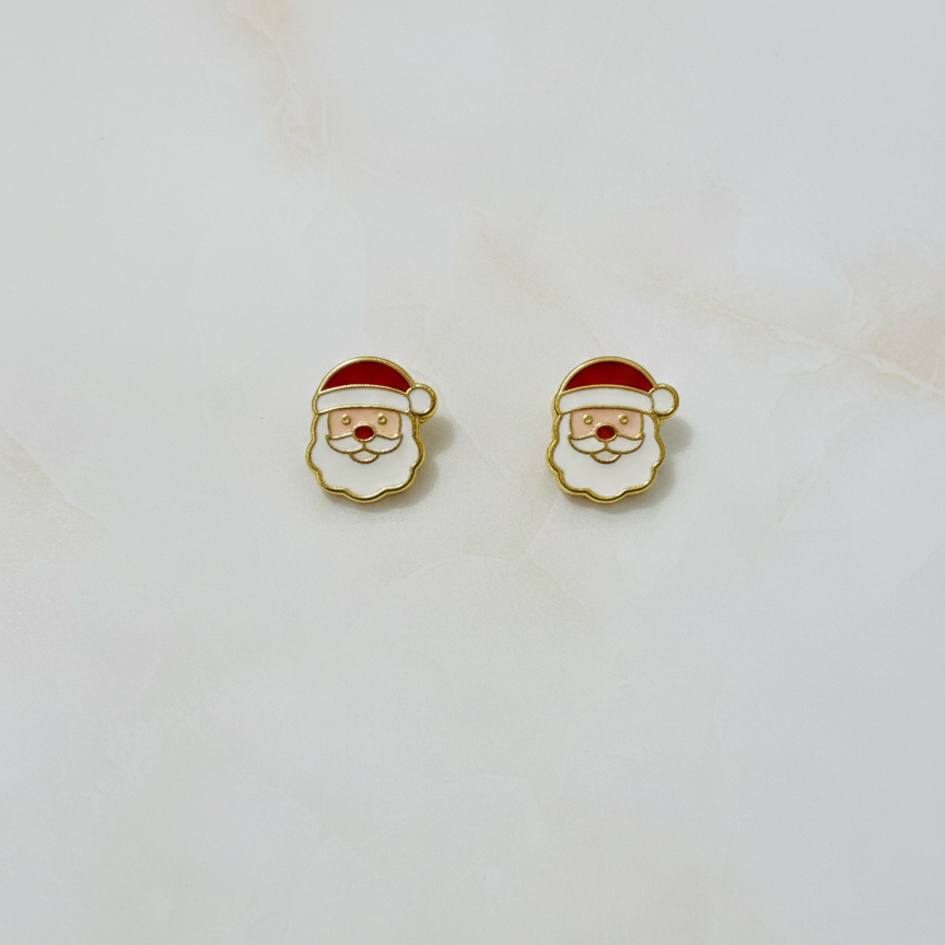 Adorable enamelled santa ear studs for girls, handcrafted in pure 92.5 sterling silver with a premium 18k gold finish. Hypoallergenic and perfect for everyday cuteness.