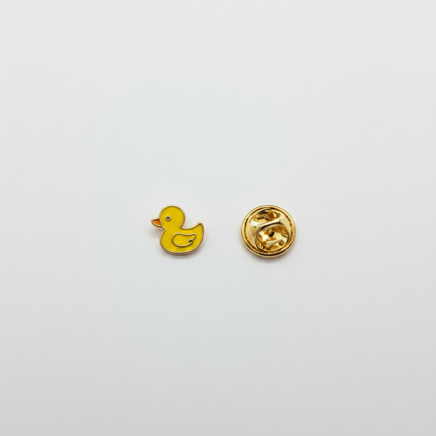 "Adorable duck enamelled lapel pin for kids, made in pure 92.5% silver with an 18k gold finish. Handcrafted with love and hypoallergenic for little ones!" I can also craft 2–3 more catchy, playful versions if you want. Do you want me to?
