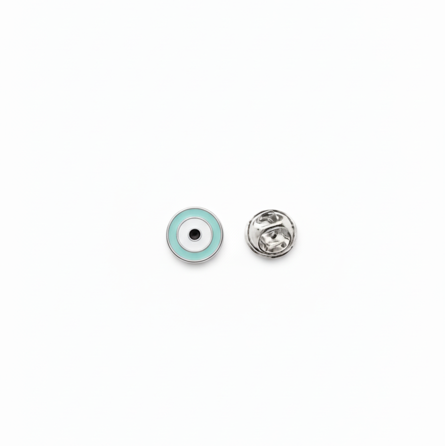"Classic blue evil eye enamelled lapel pin for kids, crafted in pure 92.5% silver with an 18k gold finish. Handcrafted with love and hypoallergenic for little ones!"
