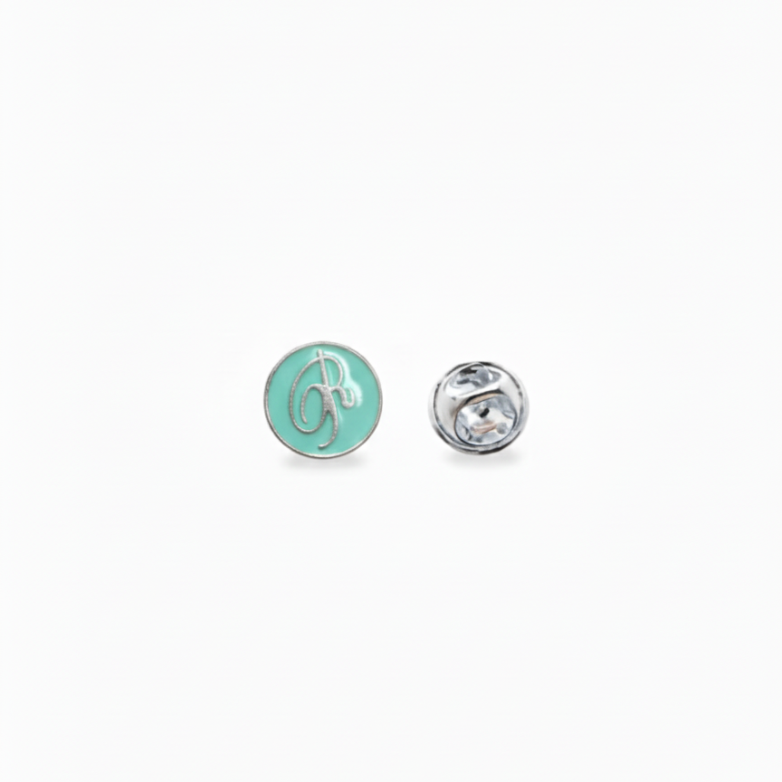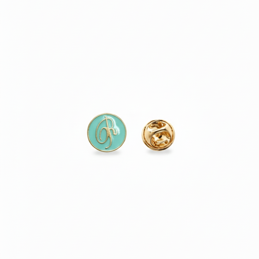 "Personalized blue initial enamelled lapel pin for kids, crafted in pure 92.5% silver with an 18k gold finish. Handcrafted with love and hypoallergenic for little ones!"