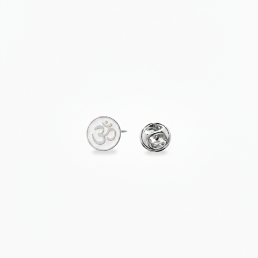 om enamel white 92.5 silver lapel pin