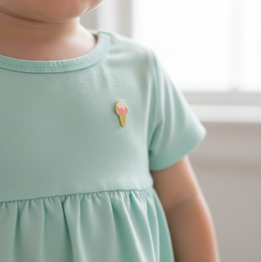 "Adorable softy enamelled lapel pin for kids, crafted in pure 92.5% silver with an 18k gold finish. Handcrafted with love and hypoallergenic for little ones!"