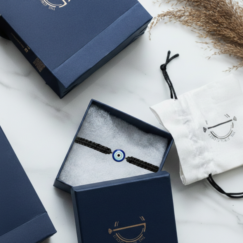 Ground him with strength and stability through our distinguished evil eye Thread Bracelet. Expertly crafted in 92.5% silver with an adjustable black thread, this bracelet symbolizes security and balance. Its minimalist design serves as a subtle reminder to connect with the earth's grounding energy.