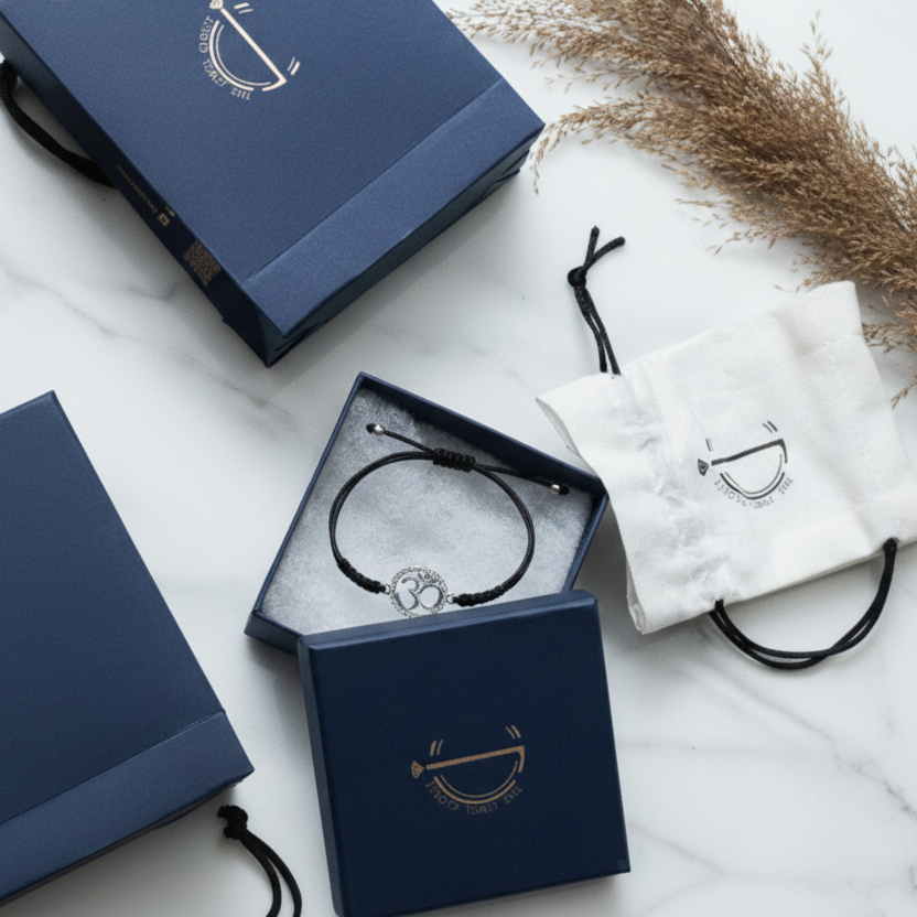 Ground him with strength and stability through our distinguished om Thread Bracelet. Expertly crafted in 92.5% silver with an adjustable black thread, this bracelet symbolizes security and balance. Its minimalist design serves as a subtle reminder to connect with the earth's grounding energy.