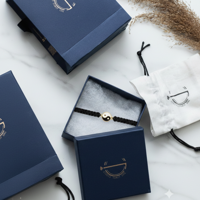 Ground him with strength and stability through our distinguished yin yang Thread Bracelet. Expertly crafted in 92.5% silver with an adjustable black thread, this bracelet symbolizes security and balance. Its minimalist design serves as a subtle reminder to connect with the earth's grounding energy.
