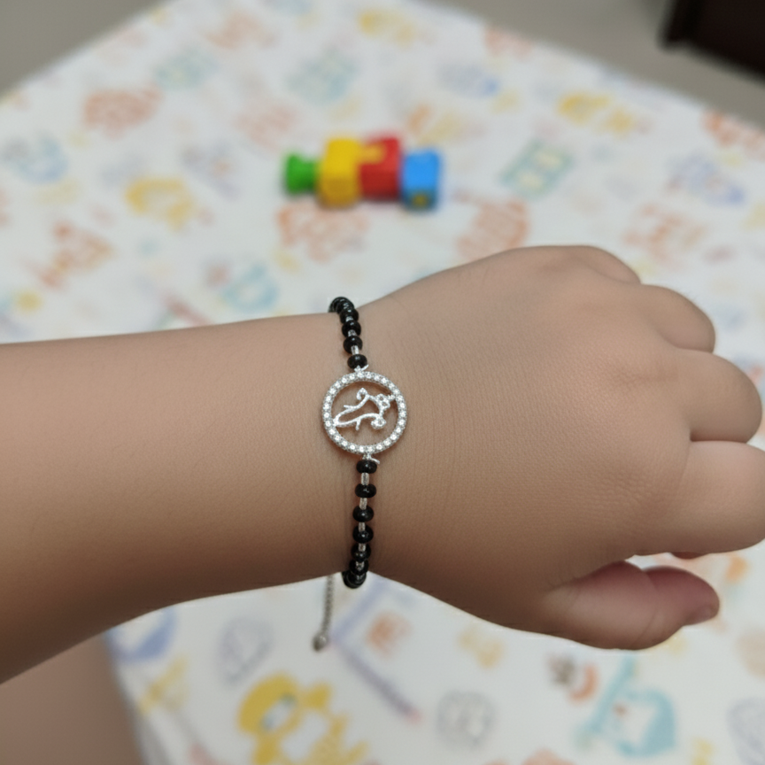 Blessed, adorable, and full of charm! Handcrafted in 92.5% pure silver with sparkling CZ stones, this Ganesha Nazariya comes with your choice of silver or 18K gold plating. Hypoallergenic and adjustable by half an inch, it’s made with love to keep your little one safe and stylish. ✨ For solid...