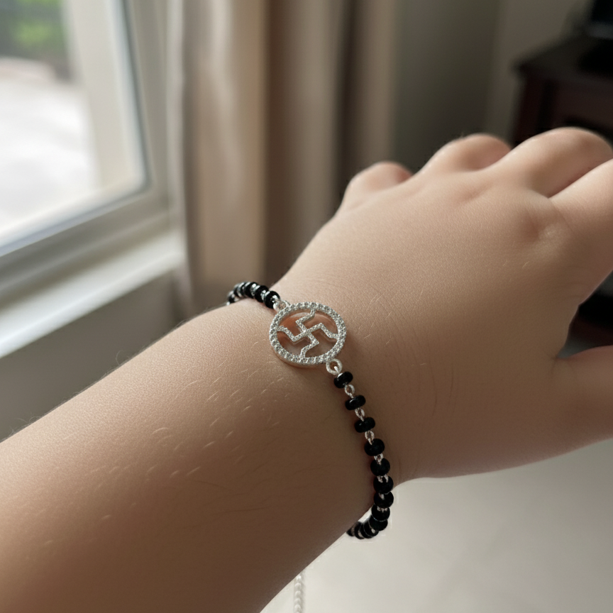 Charming, sparkling, and full of love! Handcrafted in 92.5% pure silver with dazzling CZ stones, this Sathiya Nazariya comes with your choice of silver or 18K gold plating. Hypoallergenic and adjustable by half an inch, it’s made with care to keep your little one stylish and protected. 💖 For solid...