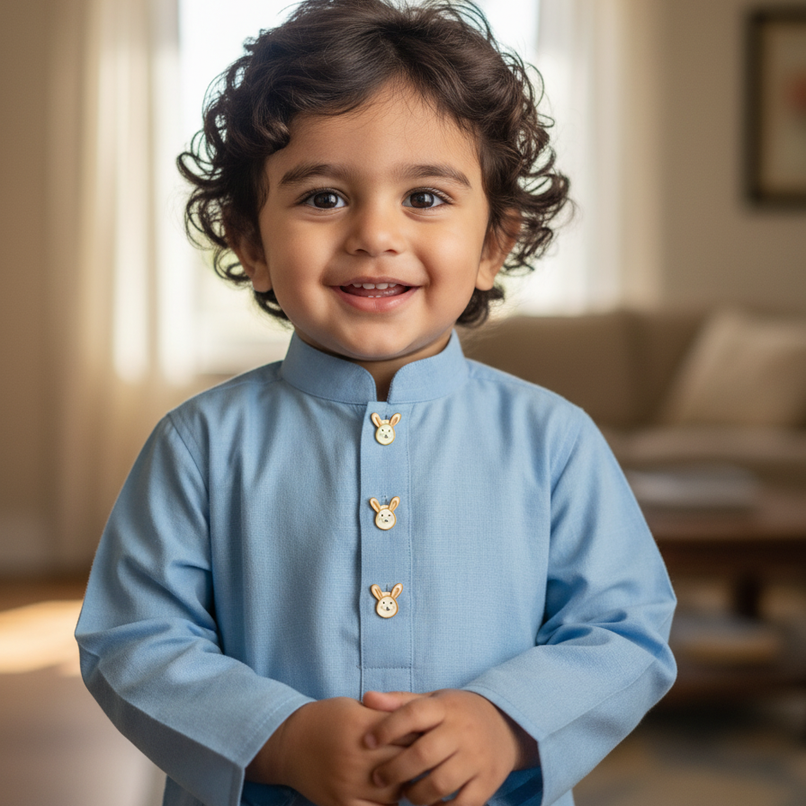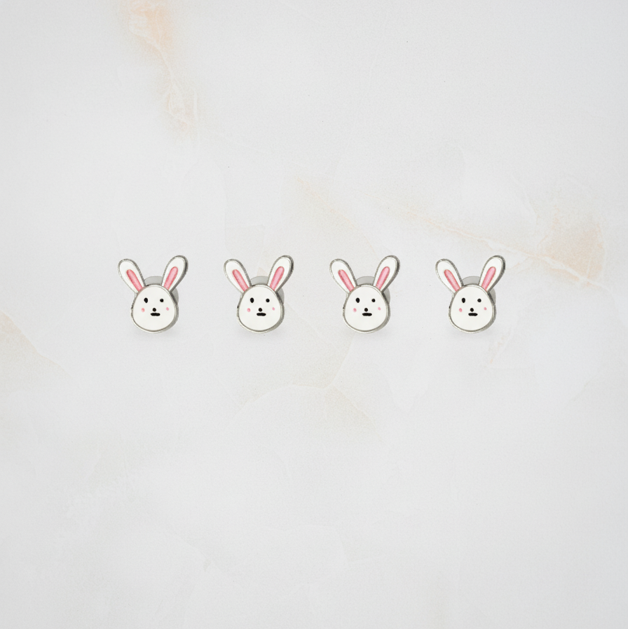 Adorable bunny enamelled kurta buttons for boys, handcrafted in pure 92.5 sterling silver with a polished 18k gold finish. Hypoallergenic and made with love, adding a playful and stylish touch to any outfit.