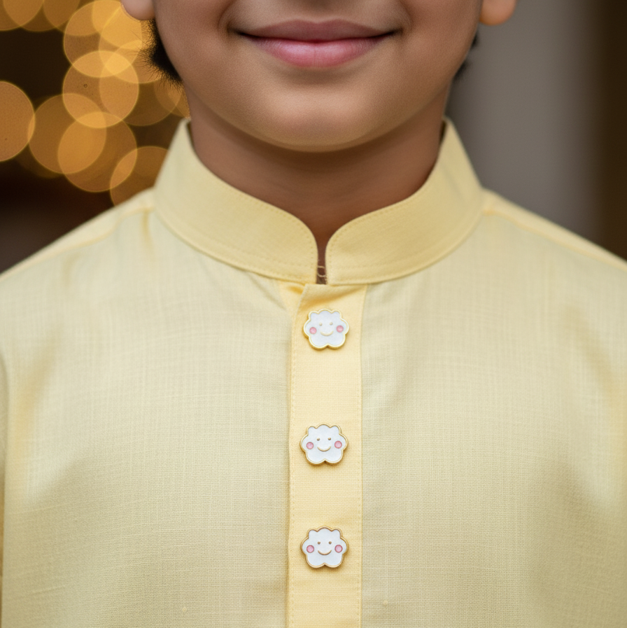 Dreamy cloud enamelled kurta buttons for boys, handcrafted in pure 92.5 sterling silver with a soft 18k gold finish. Hypoallergenic and made with love, adding a playful and stylish touch to any outfit.