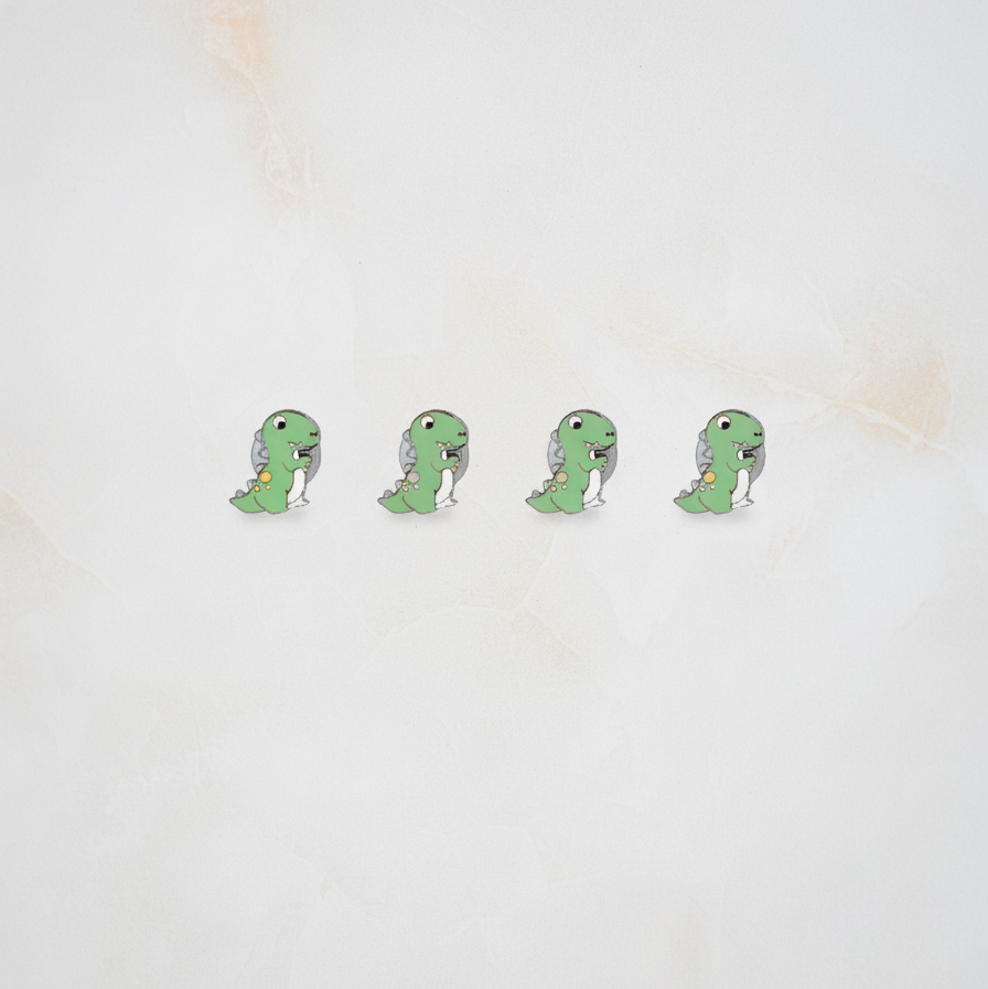 Fun dinosaur enamelled kurta buttons for boys, handcrafted in pure 92.5 sterling silver with a polished 18k gold finish. Hypoallergenic and made with love, adding a playful and stylish touch to any outfit.