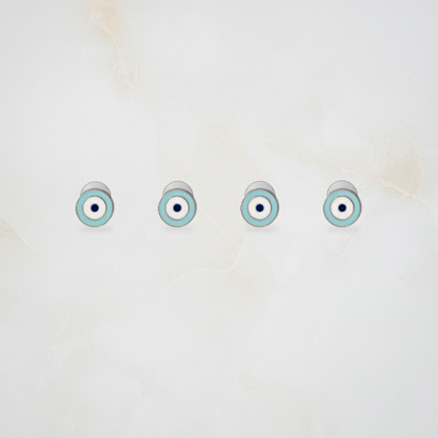 Stylish evil eye enamelled kurta buttons for boys, handcrafted in pure 92.5 sterling silver with a luxurious 18k gold finish. Hypoallergenic and crafted with love for a perfect blend of tradition and charm.