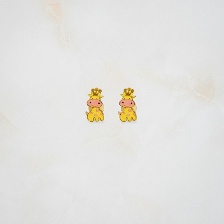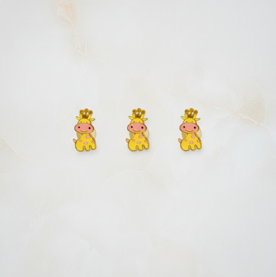 Cute giraffe enamelled kurta buttons for boys, handcrafted in pure 92.5 sterling silver with a shiny 18k gold finish. Hypoallergenic and made with love, adding a fun and stylish touch to any outfit.