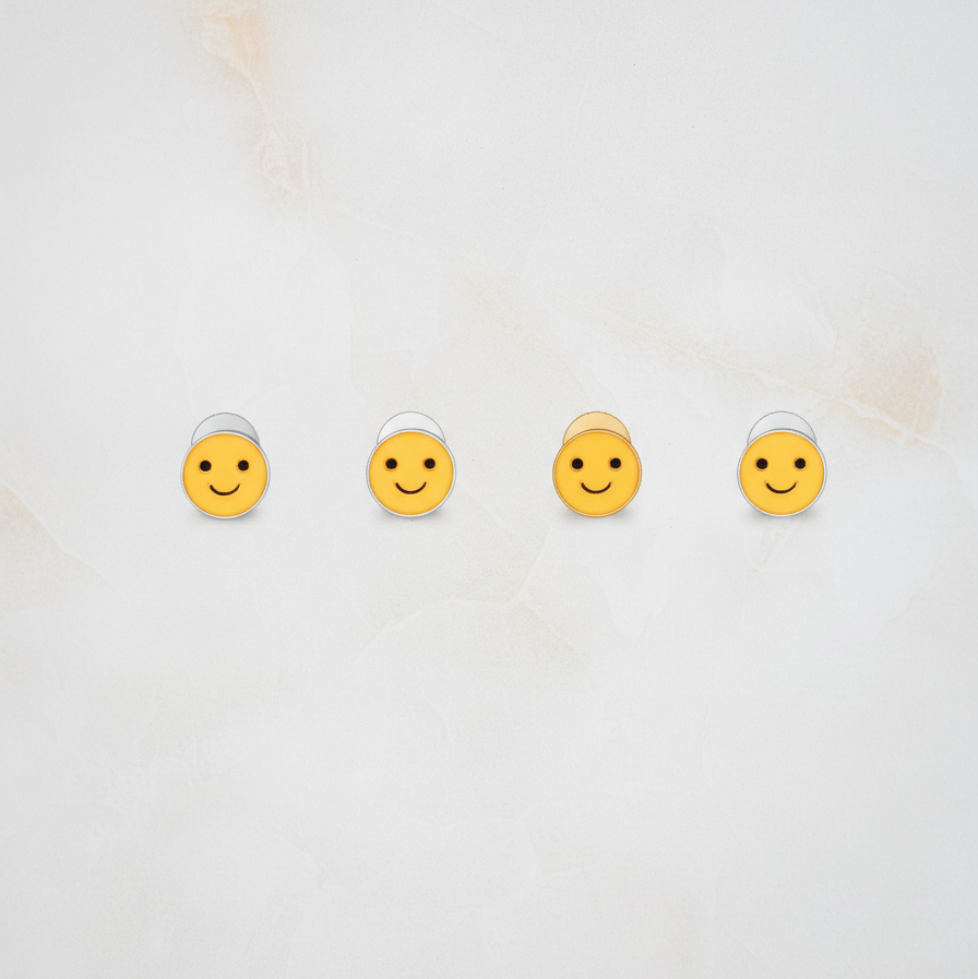 Cheerful smiley enamelled kurta buttons for boys, handcrafted in pure 92.5 sterling silver with a bright 18k gold finish. Hypoallergenic and made with love, adding a fun and stylish touch to any outfit.