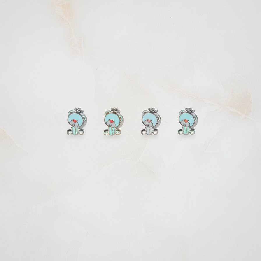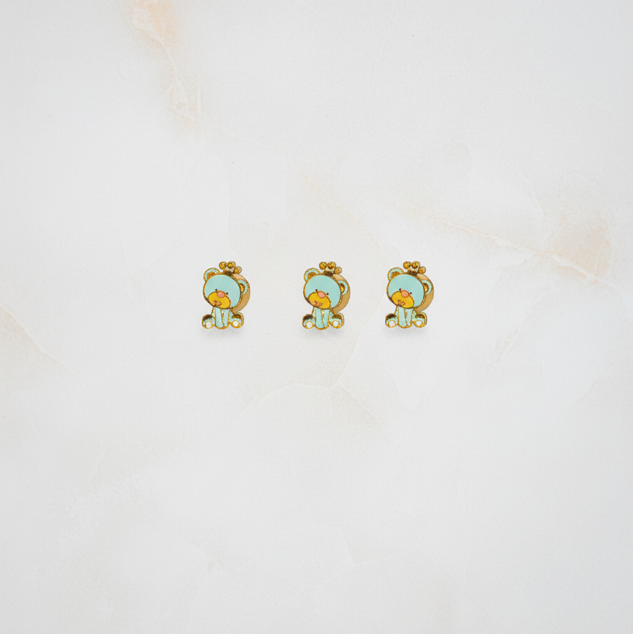 Adorable teddy enamelled kurta buttons for boys, handcrafted in pure 92.5 sterling silver with a polished 18k gold finish. Hypoallergenic and made with love, adding a playful and stylish touch to any outfit.
