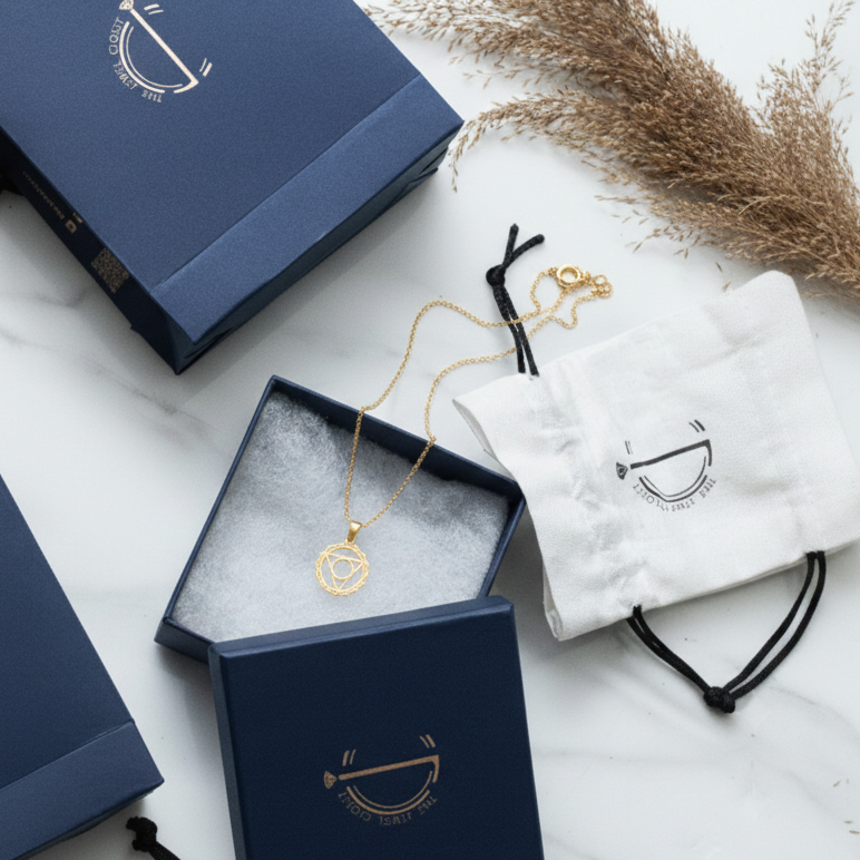 Express your truth with our enchanting Throat Chakra Charm Necklace. Intricately crafted in 92.5% silver and adorned with 18k gold plating, this necklace embodies communication and self-expression. Featuring a charming representation of the Throat chakra, it serves as a reminder to speak your authentic voice. Elevate your style and empower...