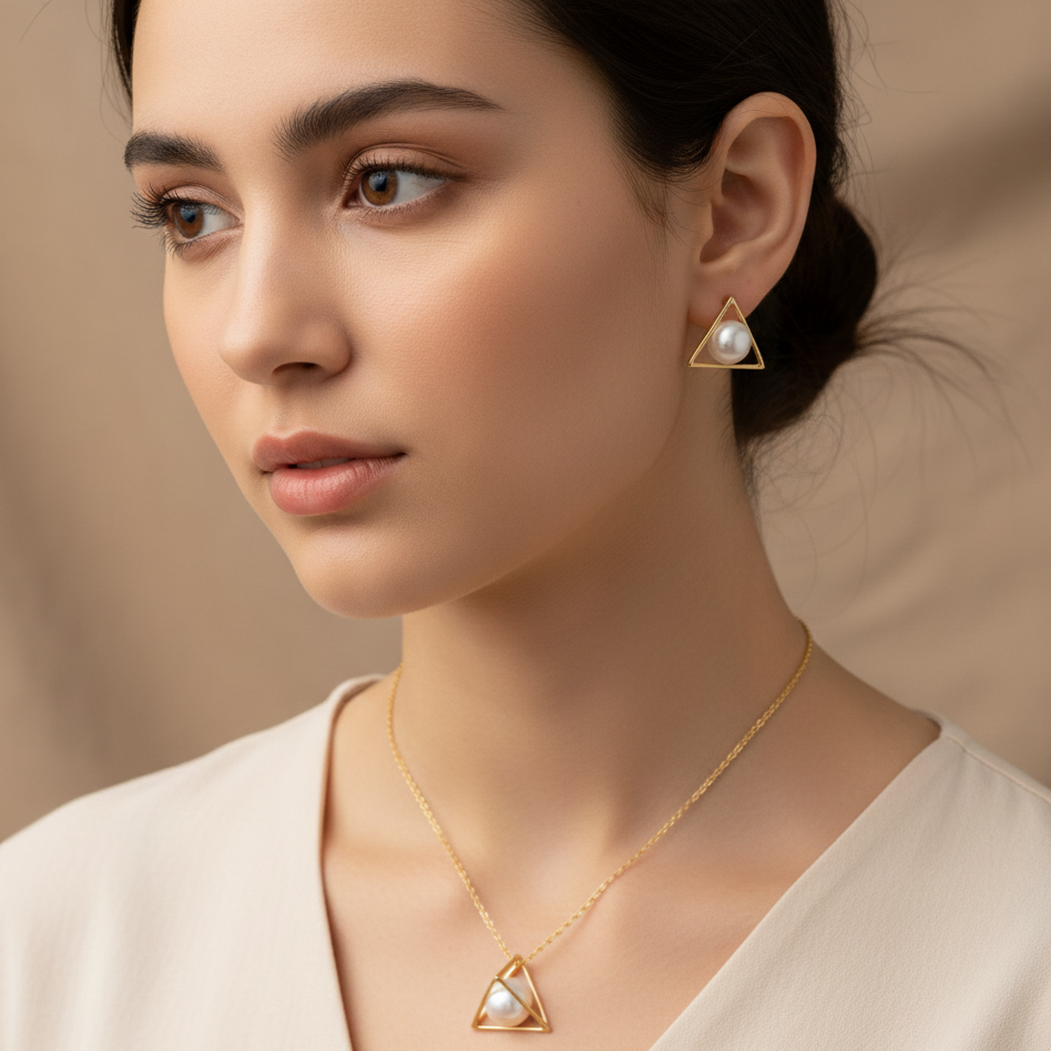 Gemstone meets geometry!A delicate, singular chain with a geometric design, holding a pearl inside is the new statement piece with the right balance of whimsy and simplicity.Shop for these elegant jewels, only from The Jewel Closet.Material used-92.5% pure silver & Fresh water pearlHandcrafted with love in India