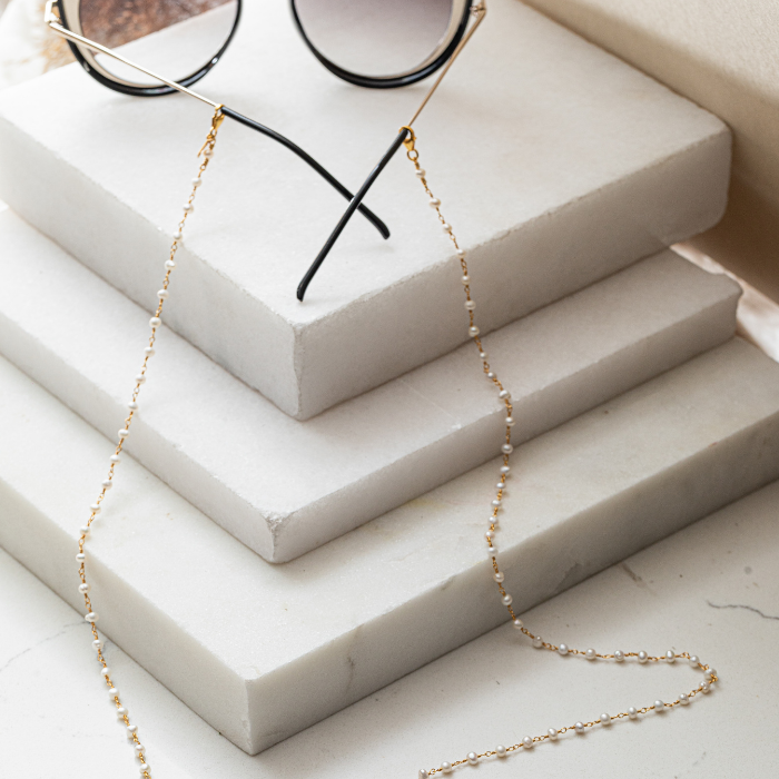 Featuring a handcrafted flexible chain made in 92.5 sterling silver with fresh water natural pearls! An extremely versatile piece that can be styled as a sunglasses chain, mask chain, necklace or even as a bracelet!