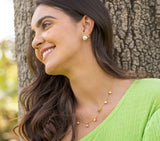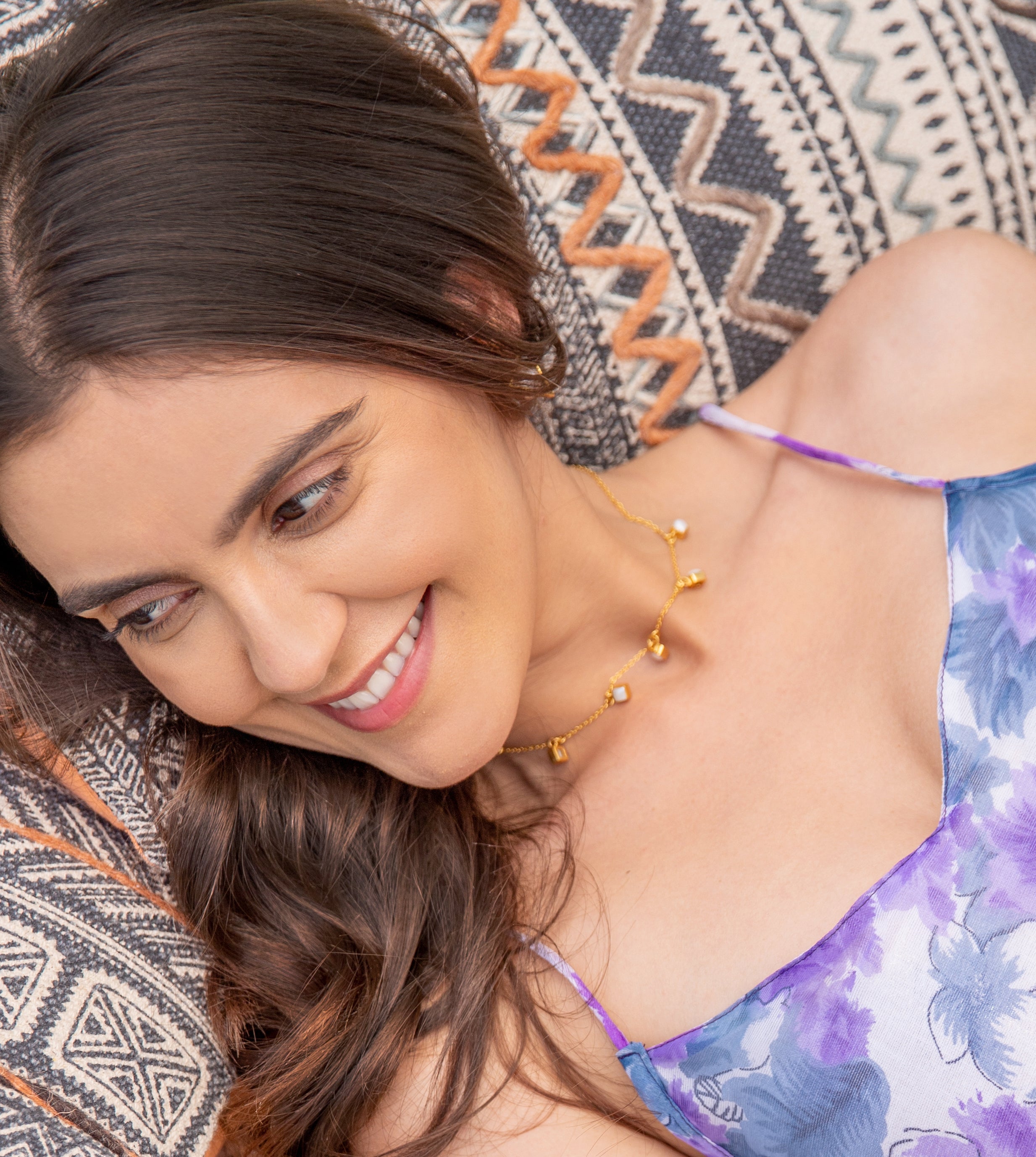 A stylish elegant necklace made in 18kts gold finish with base metal 92.5% silver with a funky side for all occasions you cant say no to. So add one to your collection now.