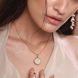 The Jewel Closet's Mother of Pearl Horoscope Pendant is a beautiful, minimalist piece that makes a perfect gift for someone special. Made with 92.5% silver and 18kts gold plated, this contemporary design is both luxurious and affordable. The pendant features Scorpio horoscope charm on a delicate chain, making it a perfect talisman or birthstone necklace.