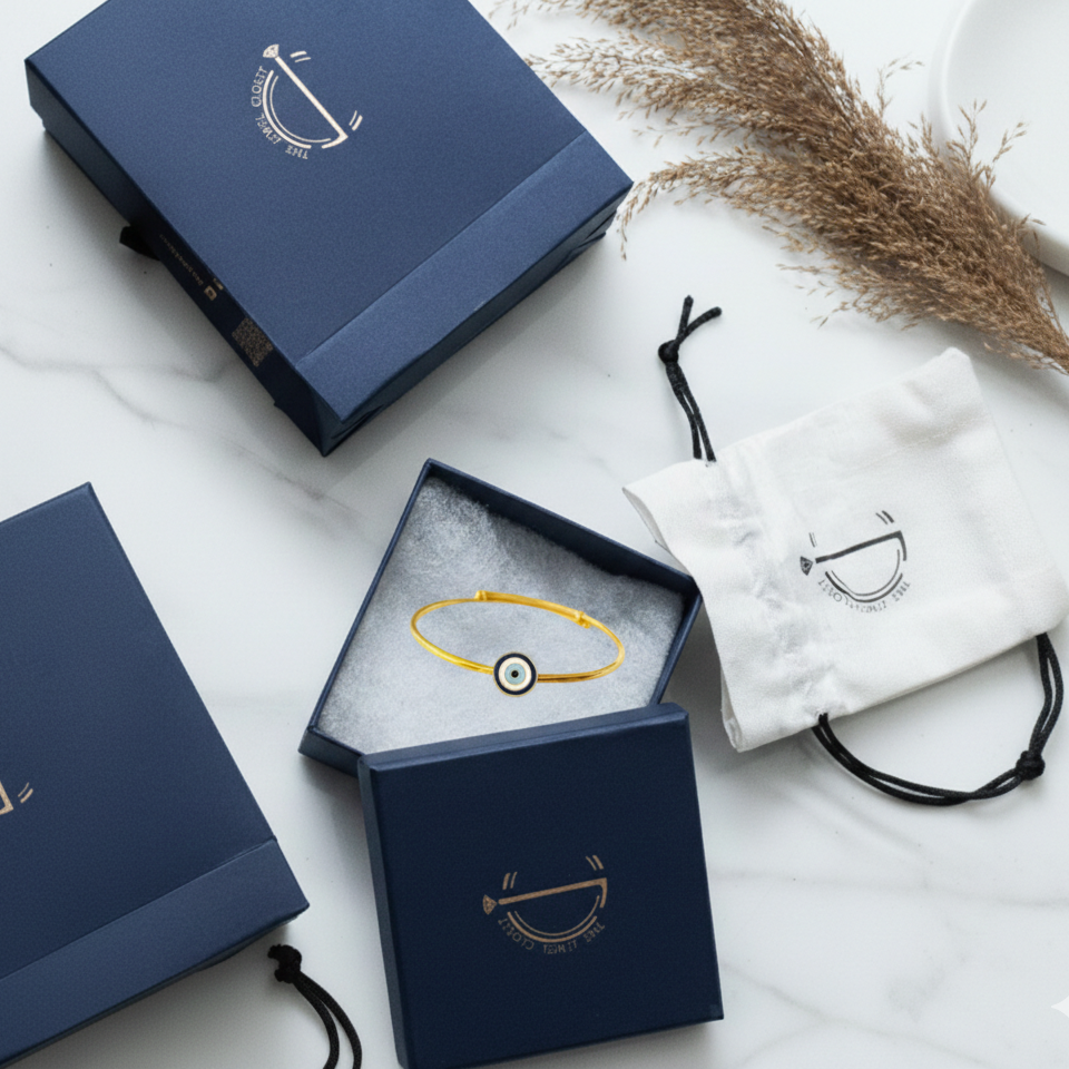 This Evil eye Silver adjustable kids' bangle is made from 92.5 sterling silver. Designed for durability and comfort, it’s adjustable to fit children up to 5 years old, adding a joyful touch to any outfit.