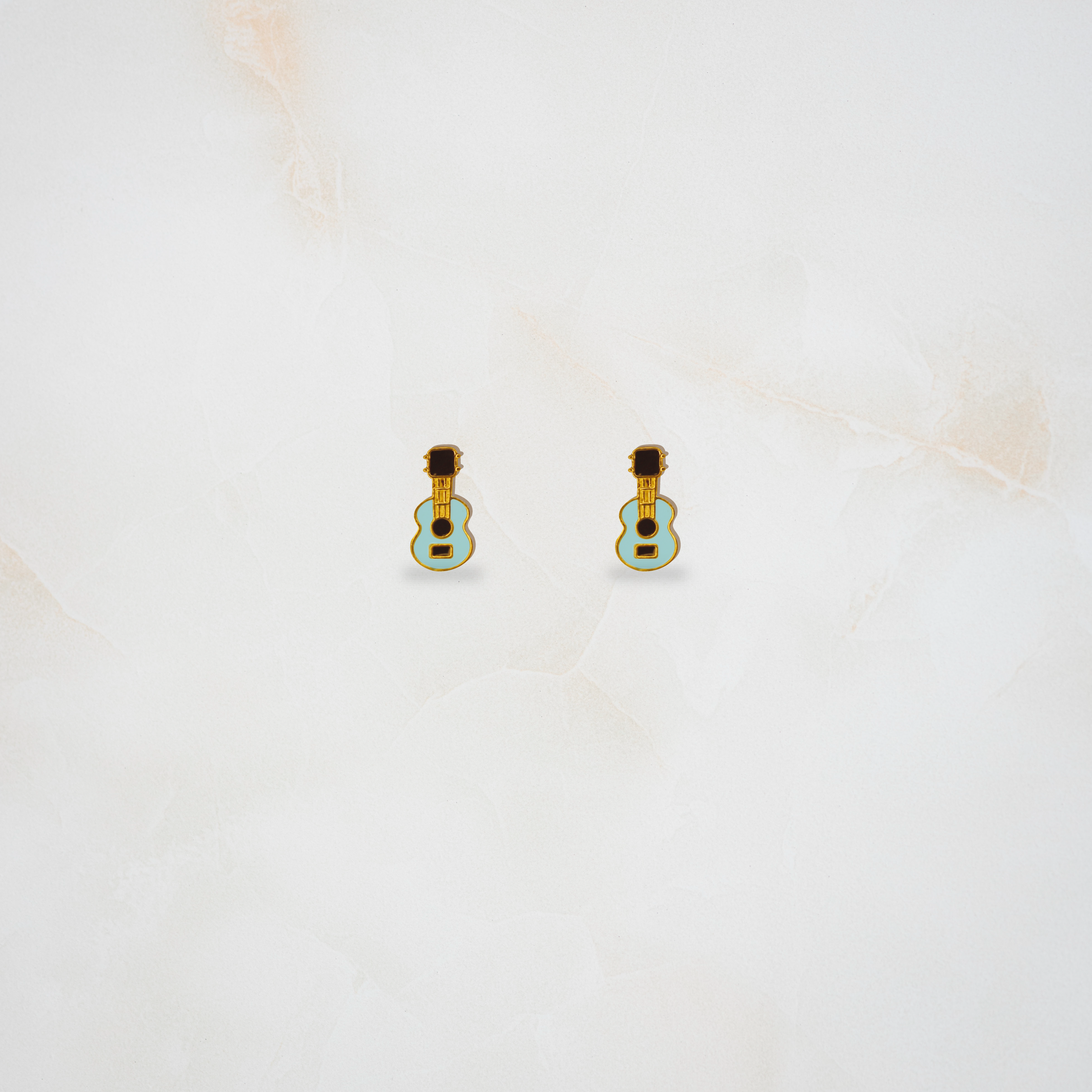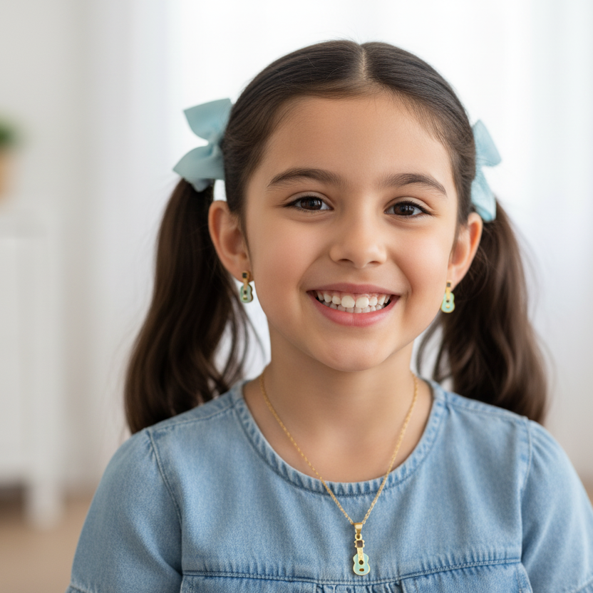 "Cool guitar enamelled necklace set for kids, made in pure 92.5% silver with an 18k gold finish. Handcrafted with love and hypoallergenic for delicate skin!"