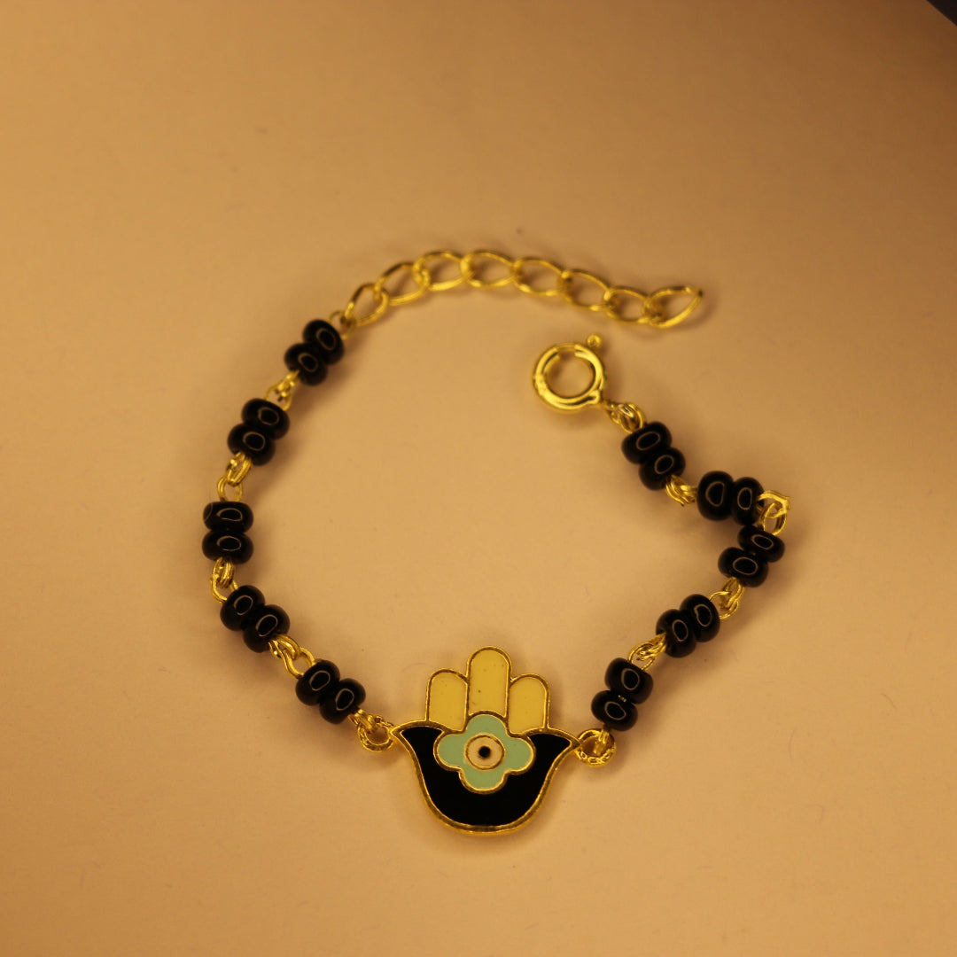 "Evoke protection and positivity with our Hamsa Nazariye for Kids, featuring exquisite enamel accents. Crafted with precision in premium 92.5% silver, this symbol of blessings can also be personalized in gold Whatsapp us on +91-6377208609 for 14k gold or 18k gold.. Empower your child's style with this meaningful accessory."