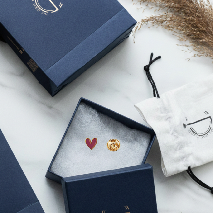 "Sweet heart enamelled lapel pin for kids, crafted in pure 92.5% silver with an 18k gold finish. Handcrafted with love and hypoallergenic for little ones!"