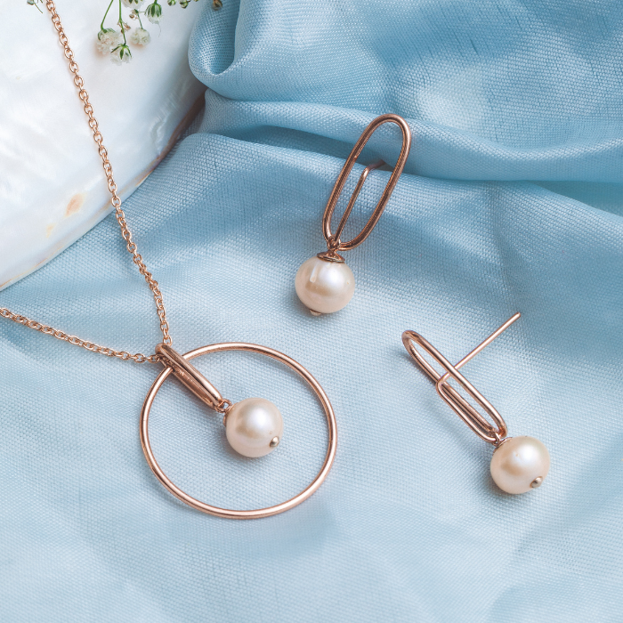 Dazzlingly vivid and beautifully minimalist, the pearl paper clip pendant is a regal statement to make with luxury jewelry. Handcrafted in 92.5 silver with 18K gold plated with an array of fresh water pearl and 18 inches long chain.