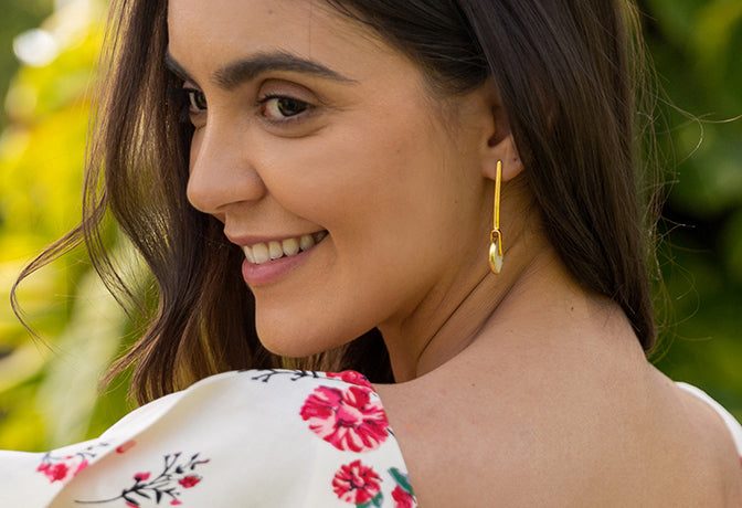 Set in a bezel setting, these pearl wheel earrings are adorned with Mother of pearls strung together to create a look as mesmerizing as the rotating wheel itself. Handcrafted with a brilliant 18K gold finish, with the base metal 92.5 hallmarked silver, these earrings will bring a touch of refined glamour - wear yours as a set or mismatch with other styles from the enchanting pearl collection.
