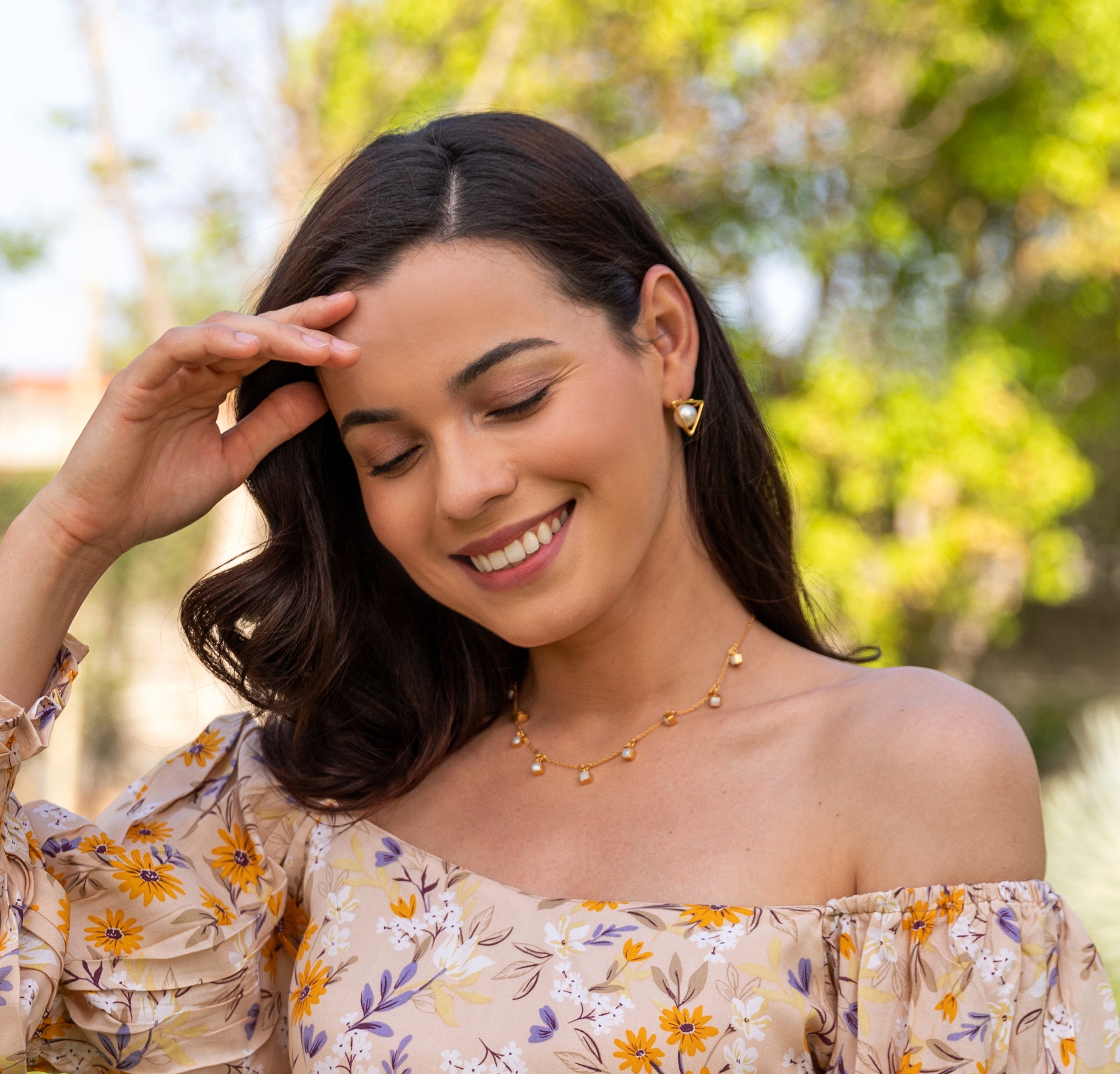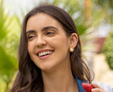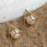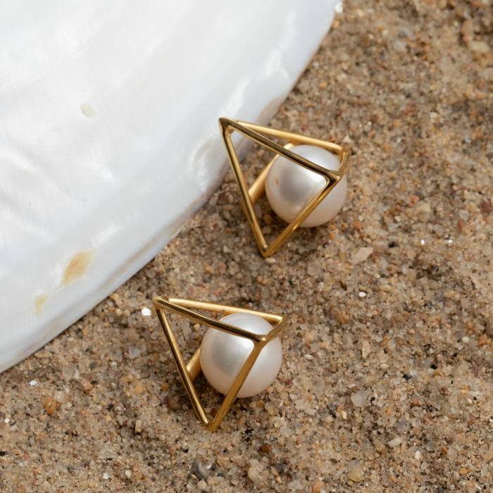 These Pearl pyramid Studs are eclectic and chic These designer stud earrings can be pair up with its similar pyramid ring or pendant from the pearl collection; with a lavish 18K gold finish made in 92.5 silver to create a look that's mystical and alluring.