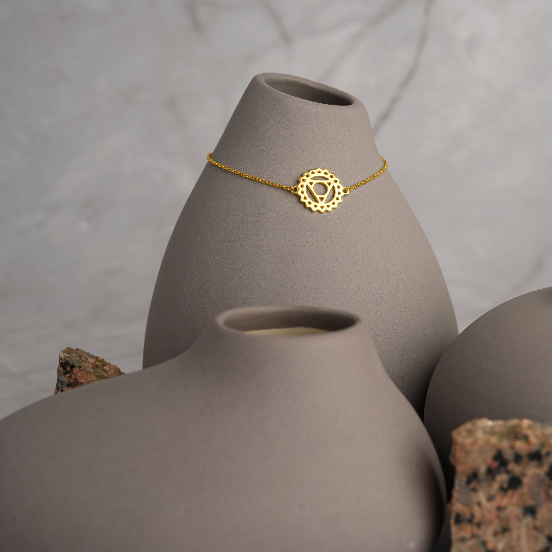 Empower her voice and authenticity with our enchanting Throat Chakra Bracelet. Meticulously crafted in 92.5% silver and adorned with 18k gold plating, this bracelet embodies communication and self-expression. Adorned with symbolic charms representing the Throat chakra, it serves as a reminder to speak her truth. Elevate her style and encourage her to embrace her unique voice with this captivating bracelet.